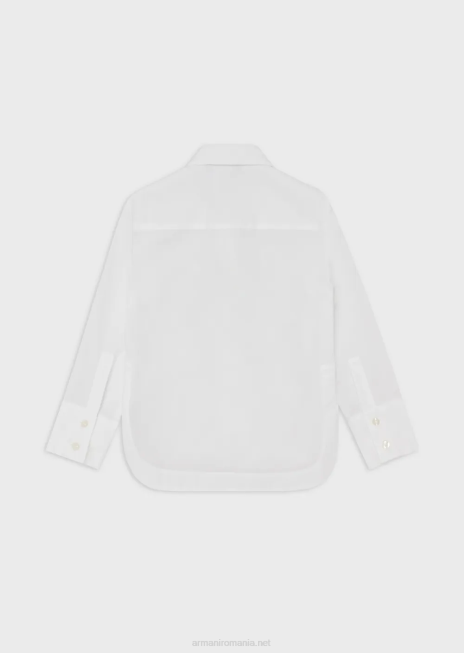 cămașă proaspătă, confortabilă din poplin de bumbac, cu guler clasic. jug la spate și manșete drepte.
