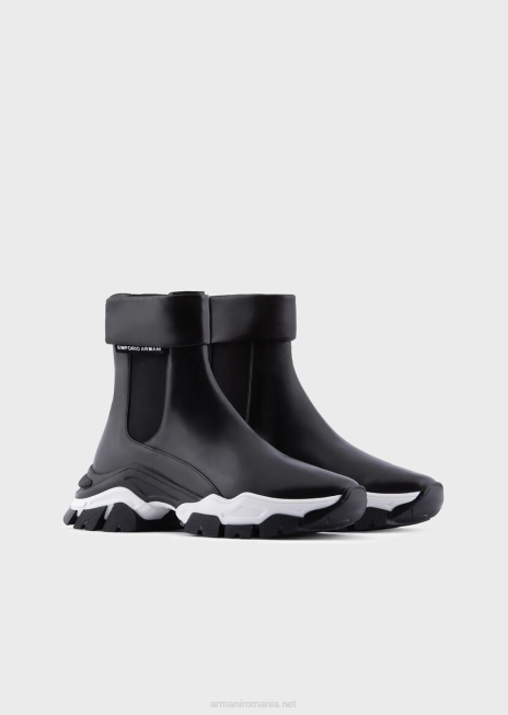 femei R802G549 botine groase din piele napa Armani negru