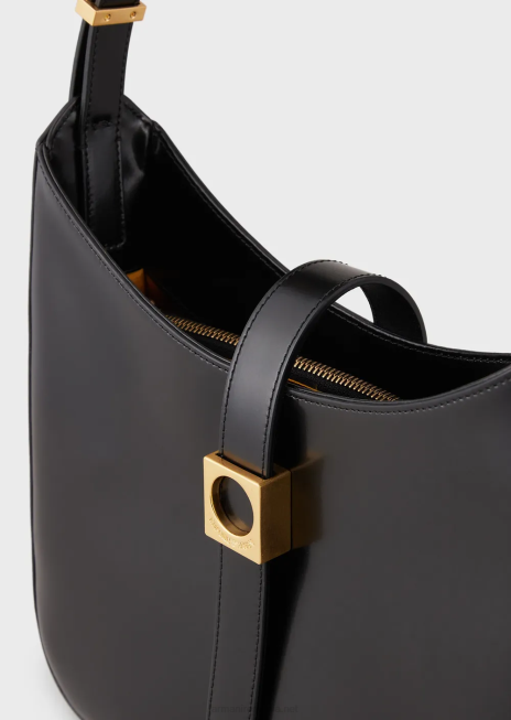 linii curate super minimaliste, cu mici note de metal. inspirația pentru aceste genți clasice hobo provine din tendința genților de sub umăr. prezintă volume decisive și o silueta geometrică îndrăzneață. Geantă de umăr din piele de vițel periată, cu închidere cu lame din piele, care este introdusă într-o buclă metalică cu marcă. feronerie de aur. dimensiuni: 25 x 27,5 x 7 cm.