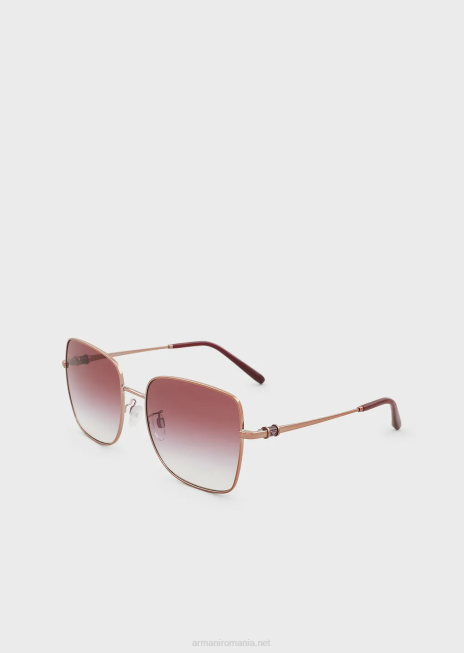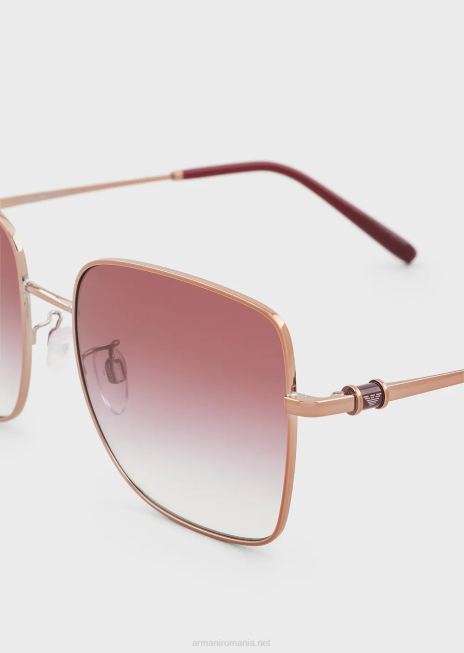 ochelari de soare de dama cu design inspirat din colectia de bijuterii, confectionati din metal in forma patrata supradimensionata. lentile gradiente si tampoane pentru nas cu o baza metalica pentru confort premium. temple tubulare cu farmec cu logo.