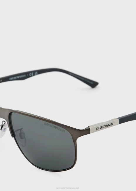 ochelari de soare pentru bărbați în stil atletic pe o structură ușor învăluitoare și ecologică din metal și aluminiu. tâmple conturate și logo lateral pe tâmple, cu detalii din aluminiu.