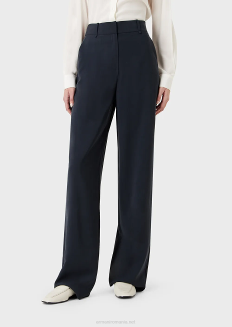 femei R802G270 pantaloni palazzo fluidi din gabardină Armani azur