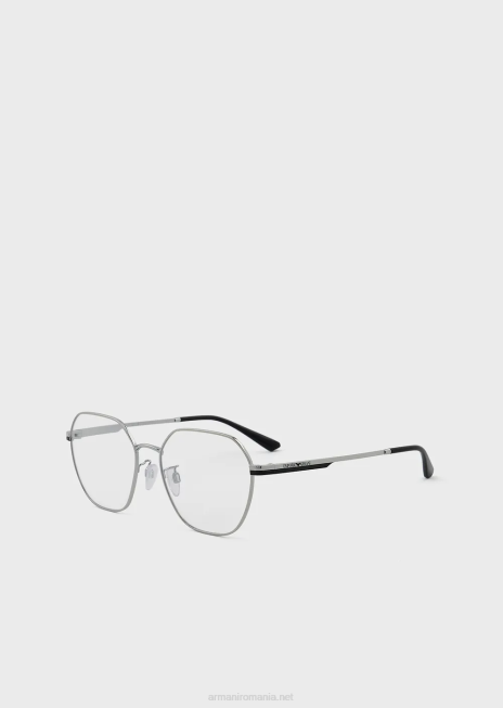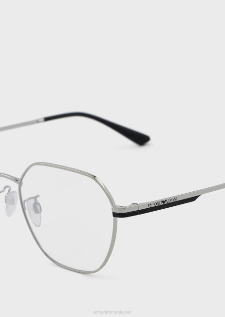 ochelari moderni de damă pe un cadru metalic. construcție geometrică cu tampoane pentru nas cu baze metalice pentru un plus de confort și tâmple împodobite cu un logo emporio armani tăiat cu laser. Asia fit.