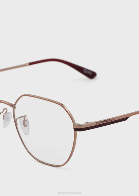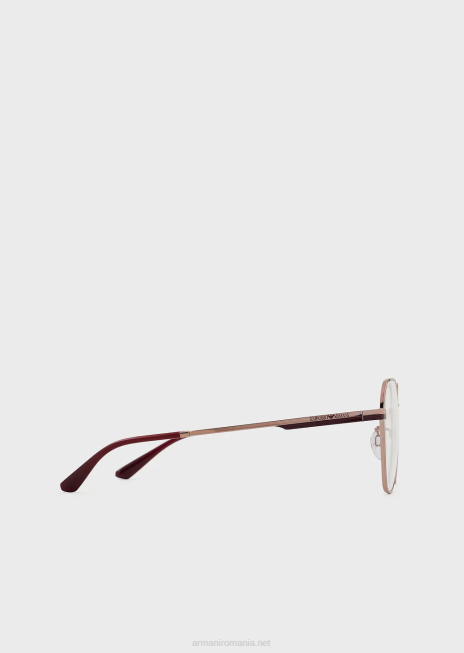 ochelari moderni de damă pe un cadru metalic. construcție geometrică cu tampoane pentru nas cu baze metalice pentru un plus de confort și tâmple împodobite cu un logo emporio armani tăiat cu laser. Asia fit.