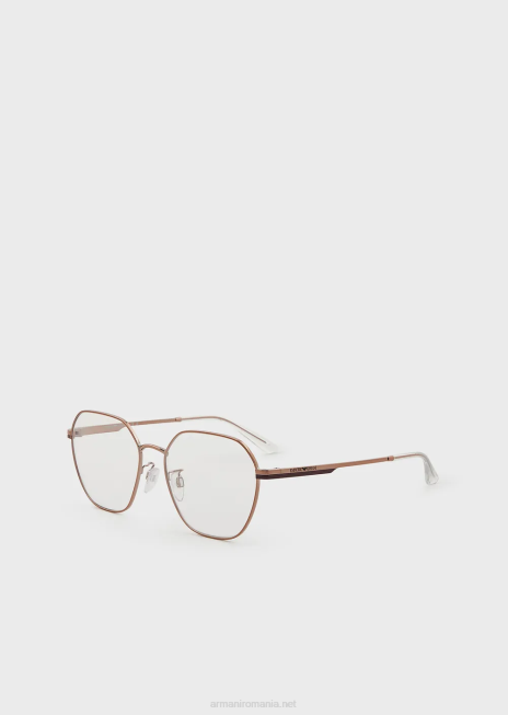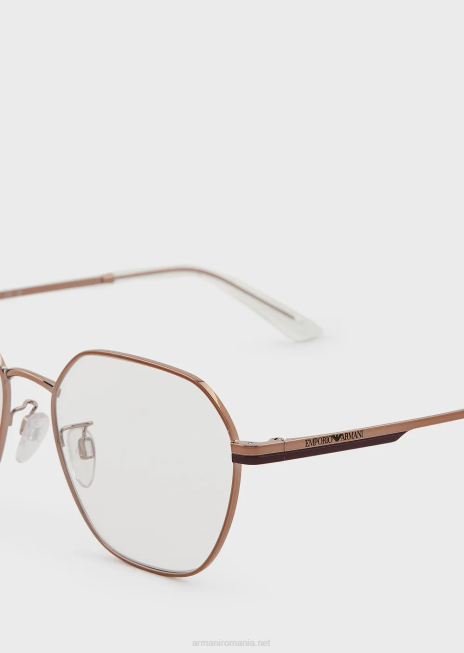 ochelari moderni de damă pe un cadru metalic. construcție geometrică cu tampoane pentru nas cu baze metalice pentru un plus de confort și tâmple împodobite cu un logo emporio armani tăiat cu laser. Asia fit.