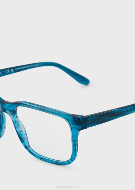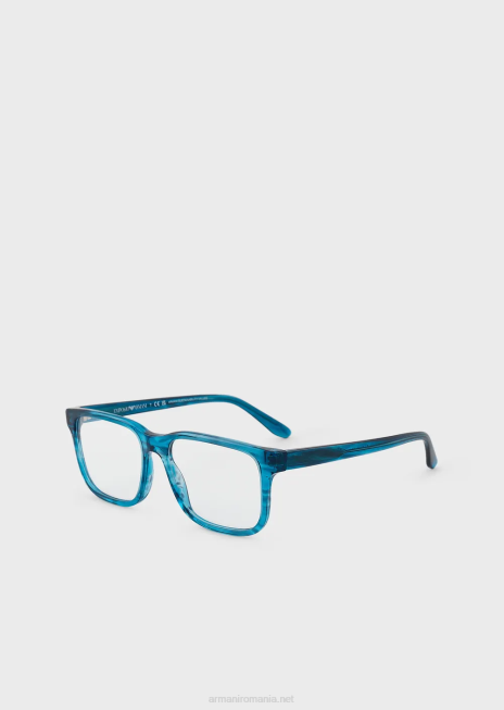 ochelari de bărbați cu design modern din bioacetat ecologic, îmbinând designul și durabilitatea. cu miez metalic, croieli geometrice, detalii transparente și logo-ul emporio armani imprimat. Asia fit.
