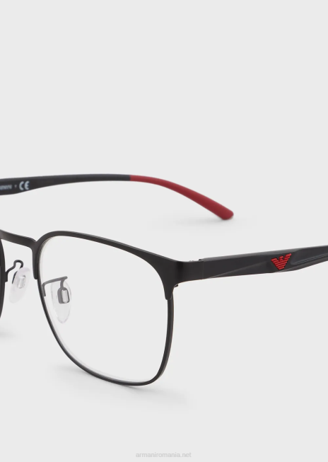 ochelari de bărbați din metal și fibră de nailon cu tampoane pentru nas cu o bază metalică care îi fac foarte confortabili. Tâmple teșite cu efect 3D, inspirate de fiecare curele de ceas, cu secțiunea de capăt interioară din cauciuc, care se potrivește cu logo-ul vulturului.