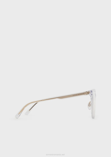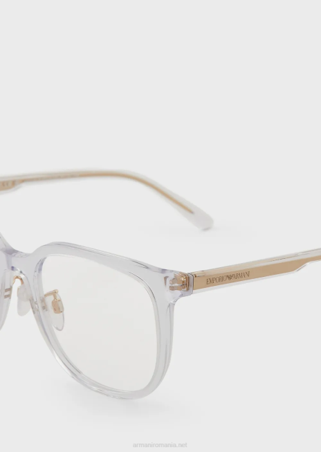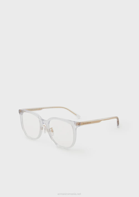 ochelari pătrați supradimensionați pentru bărbați pe ramă de acetat. miez metalic, tampoane pentru nas cu baze metalice pentru un plus de confort și tâmple împodobite cu logo-ul Emporio Armani tăiat cu laser.