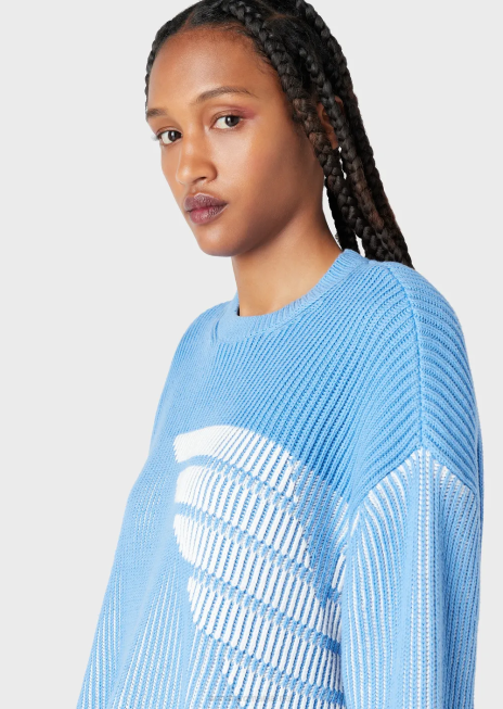 Home| femei| îmbrăcăminte| tricotaje| femei R802G188 jumper vanise cu sigla supradimensionata Armani azur